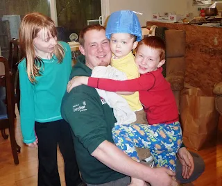 Alicia, Danny, Collin and Ethan. We were lucky enough to see Collin on Tuesday night before he unexpectedly headed back up to the hospital the next day. While he is up there the cousins cannot see him because of a RSV threat. So this made my kids' night.